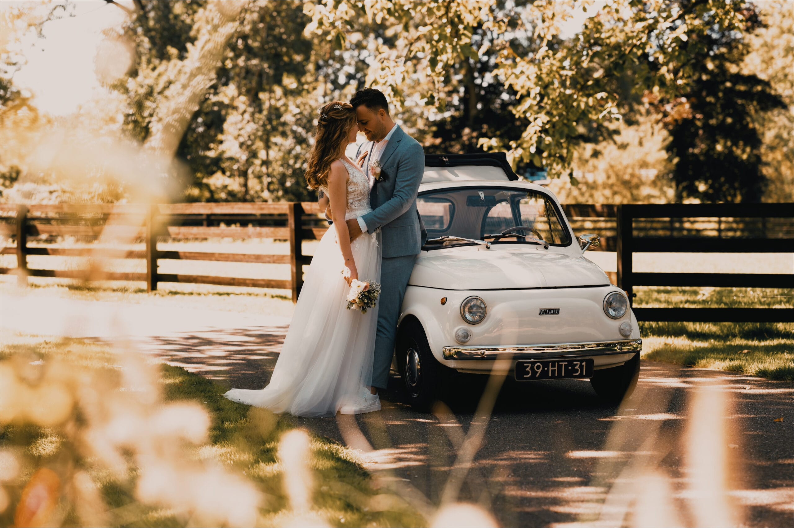 Stijlvolle en Perfect Onderhouden Auto’s: Elke trouwauto verkeert in showroomstaat, klaar voor iconische trouwfoto’s die jarenlang schitteren in jullie album.