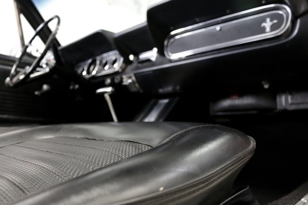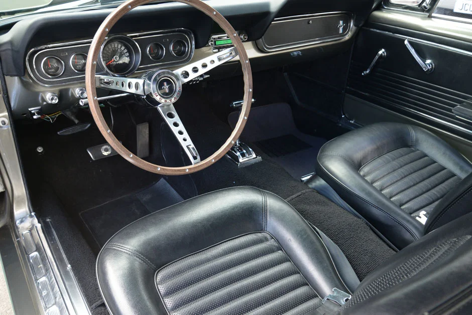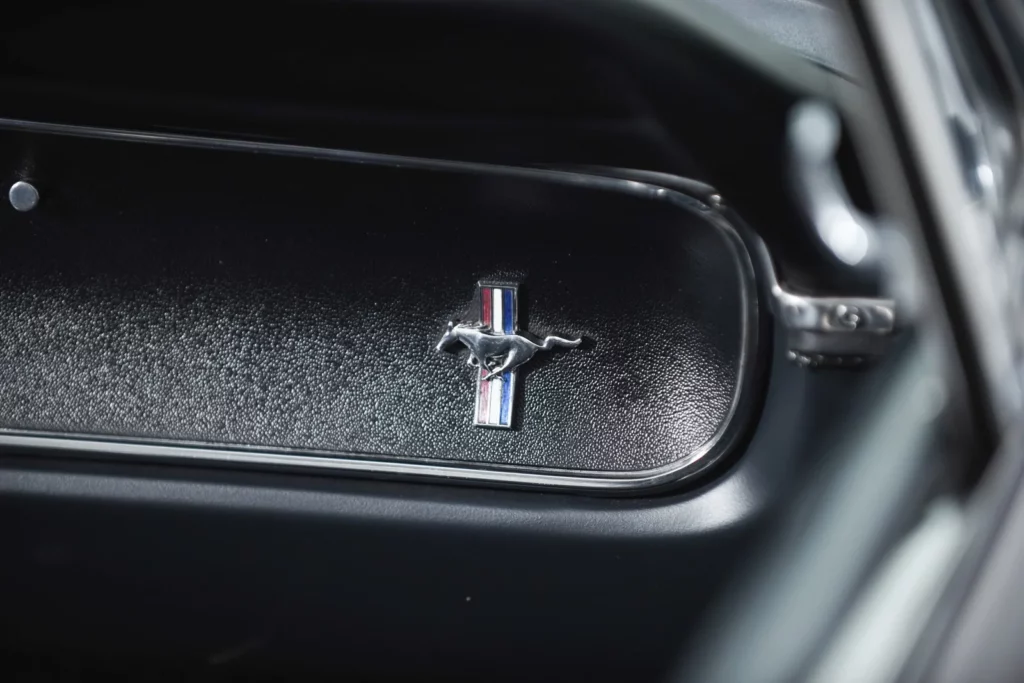 Het interieur is in perfecte staat. De deurpanelen zijn mooi. En het vloertapijt (met Mustang logo) in de auto is origineel en in topconditie.