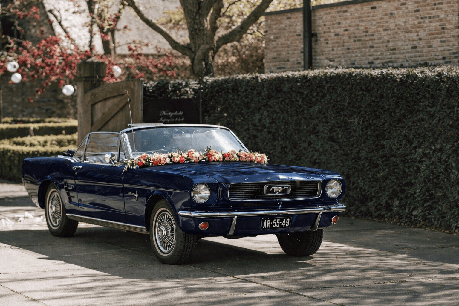 De Ford Mustang uit 1966 behoort tot de meest succesvolle modellen ooit geproduceerd in Amerika — en terecht, wat ons betreft! Deze blauwe cabriolet is ronduit adembenemend. Nieuwsgierig geworden? Met zijn stoere uitstraling, uitstekende rijeigenschappen en ruime interieur (geschikt voor vier personen) biedt deze Amerikaanse trouwauto alles wat je zoekt — en het mooiste van alles: jullie mogen zelf rijden!